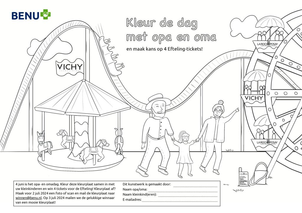 Voor Opa & omadag 2024 heb ik een kleurplaat voor BENU mogen ontwerpen. Deze kleurplaat komt bij apotheken door heel Nederland te liggen met als doel: kleur ‘m in met je opa en/of oma en maak kans op 4 Efteling-tickets!
