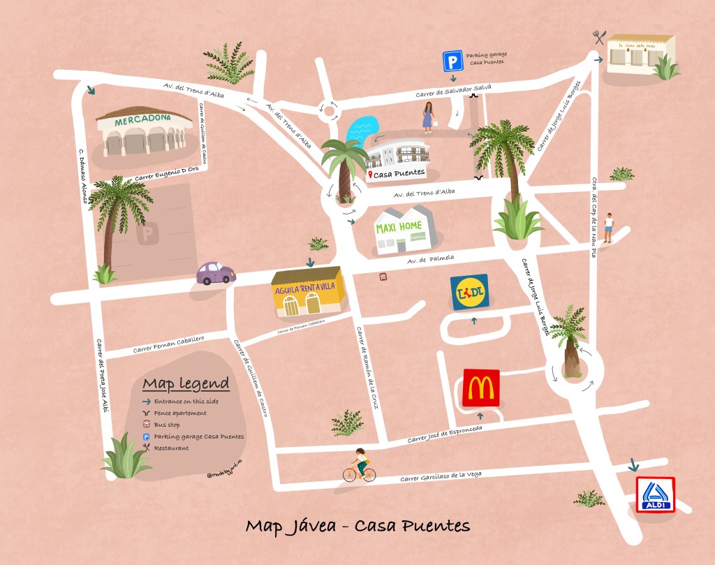 Leuke opdracht voor de eigenaren van een vakantiehuis in Spanje. De eigenaren van Casa Puentes willen hun huurders een plattegrond opsturen waar ze in één oogopslag kunnen zien waar ze overal terecht kunnen.